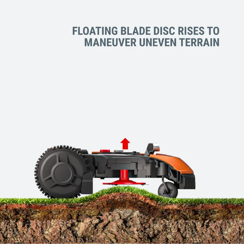 - Floating blade disc automatically lifts the blades giving Landroid more clearance to navigate uneven terrain without getting trapped or stuck.